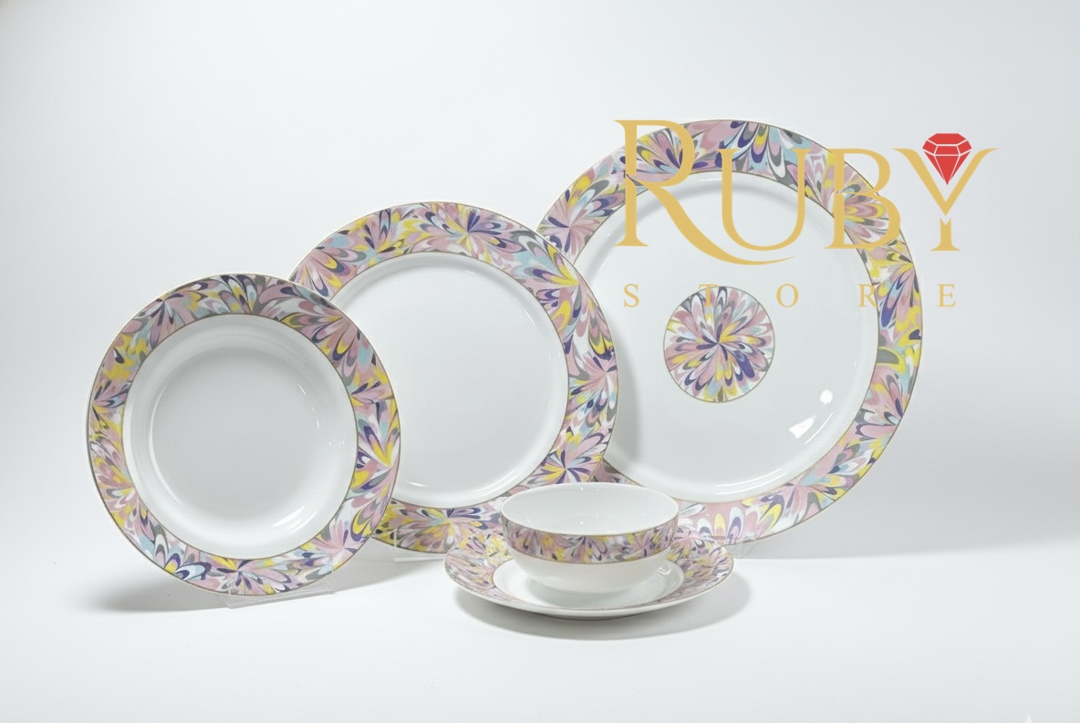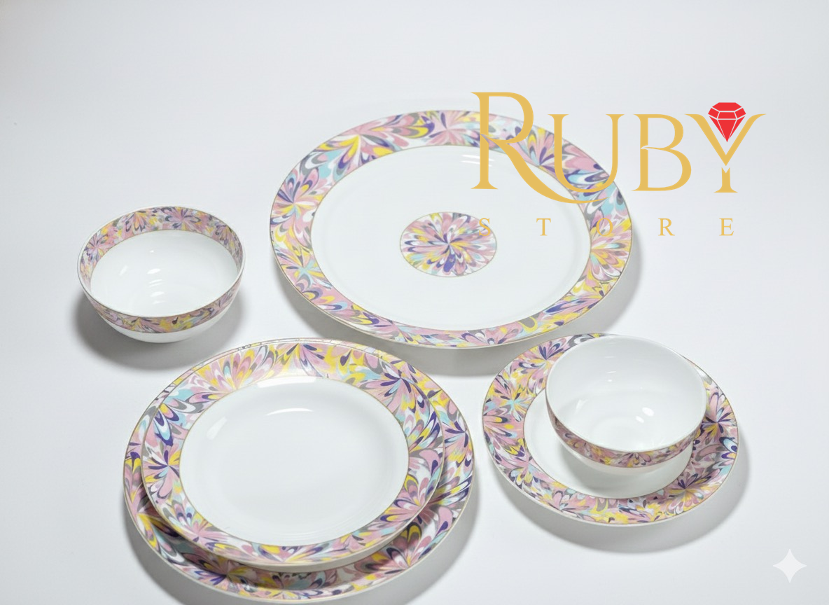 سرویس آرکوپال ۶ نفره ۲۶ پارچه با قالب بن (Bone) و طرح رینبو، تولید شده توسط برند معتبر گلدن اپال، انتخابی برجسته برای آن دسته از افرادی است که به دنبال ترکیبی از زیبایی سنتی و لمسی از مدرنیته در آشپزخانه خود هستند. این سرویس با طرحهای رنگی ، نمایانگر ظرافت و شکوه سلطنتی است.این سرویس شامل ۶ عدد کاسه ماست خوری، ۶عددخورشت خوری، ۶عددپیش دستی و ۶عددپلو خوری، به همراه یک عدددیس گرد و یک عدد کاسه بزرگ سالاد خوری است که کاملاً مناسب برای استفاده در مهمانیها و مناسبتهای خاص است. جنس بدنه از آرکوپال و اپال این سرویس را در برابر ضربه و شکستگی مقاوم ساخته و عمر طولانی را برای آن تضمین میکند و دارای ضمانت و گارانتی ۱۸ماه می باشد