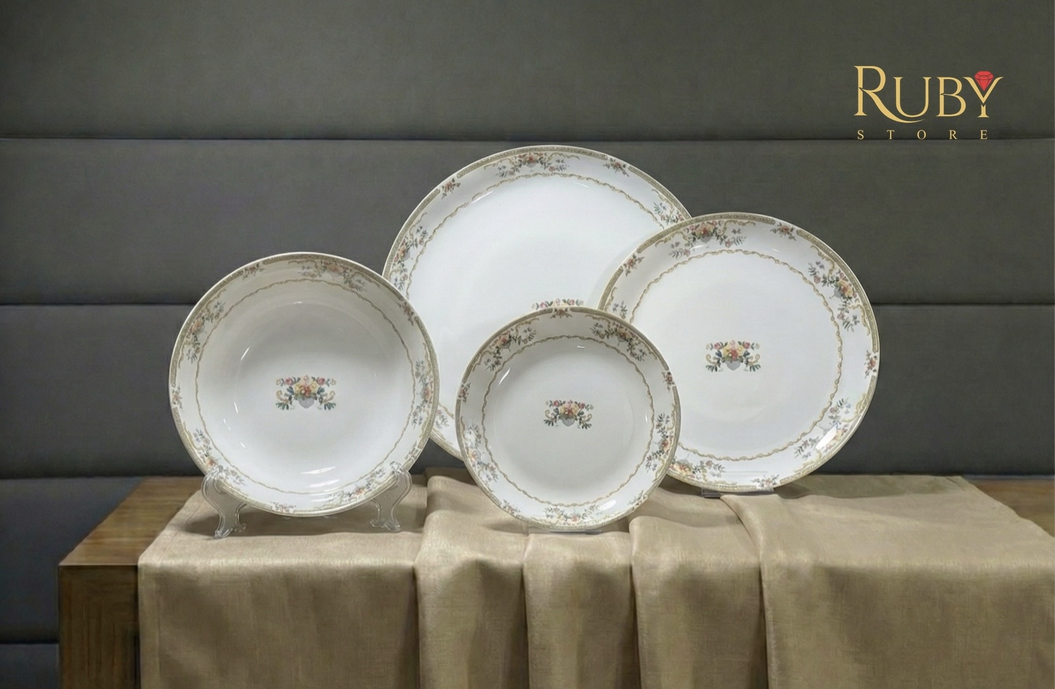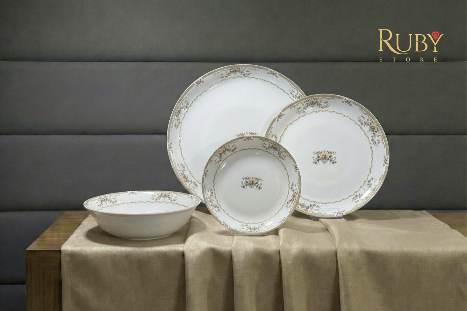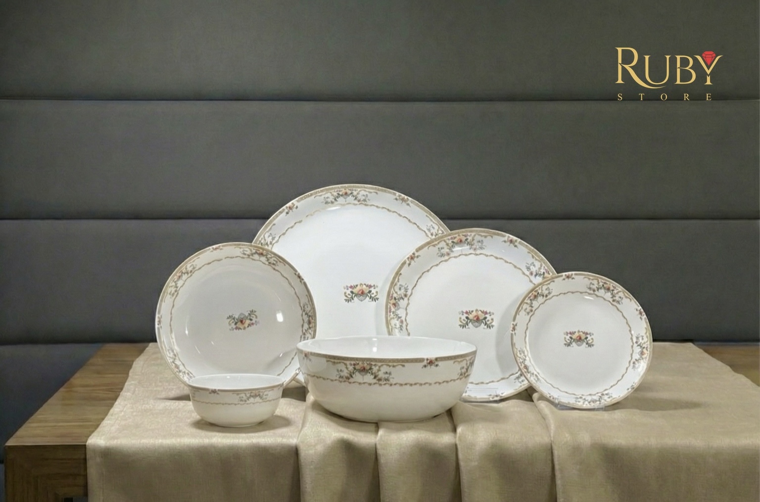 سرویس آرکوپال ۶ نفره ۲۶ پارچه با قالب بن (Bone) و طرح آنا، تولید شده توسط برند معتبر گلدن اپال، انتخابی برجسته برای آن دسته از افرادی است که به دنبال ترکیبی از زیبایی سنتی و لمسی از مدرنیته در آشپزخانه خود هستند. این سرویس با طرحهای طلادار و کف گل، نمایانگر ظرافت و شکوه است.این سرویس شامل ۶ عدد کاسه ماست خوری، ۶عددخورشت خوری، ۶عددپیش دستی و ۶عددپلو خوری، به همراه یک عدددیس گرد و یک عدد کاسه بزرگ سالاد خوری است که کاملاً مناسب برای استفاده در مهمانیها و مناسبتهای خاص است. جنس بدنه از آرکوپال و اپال این سرویس را در برابر ضربه و شکستگی مقاوم ساخته و عمر طولانی را برای آن تضمین میکند و دارای ضمانت و گارانتی ۱۸ ماهه می باشد