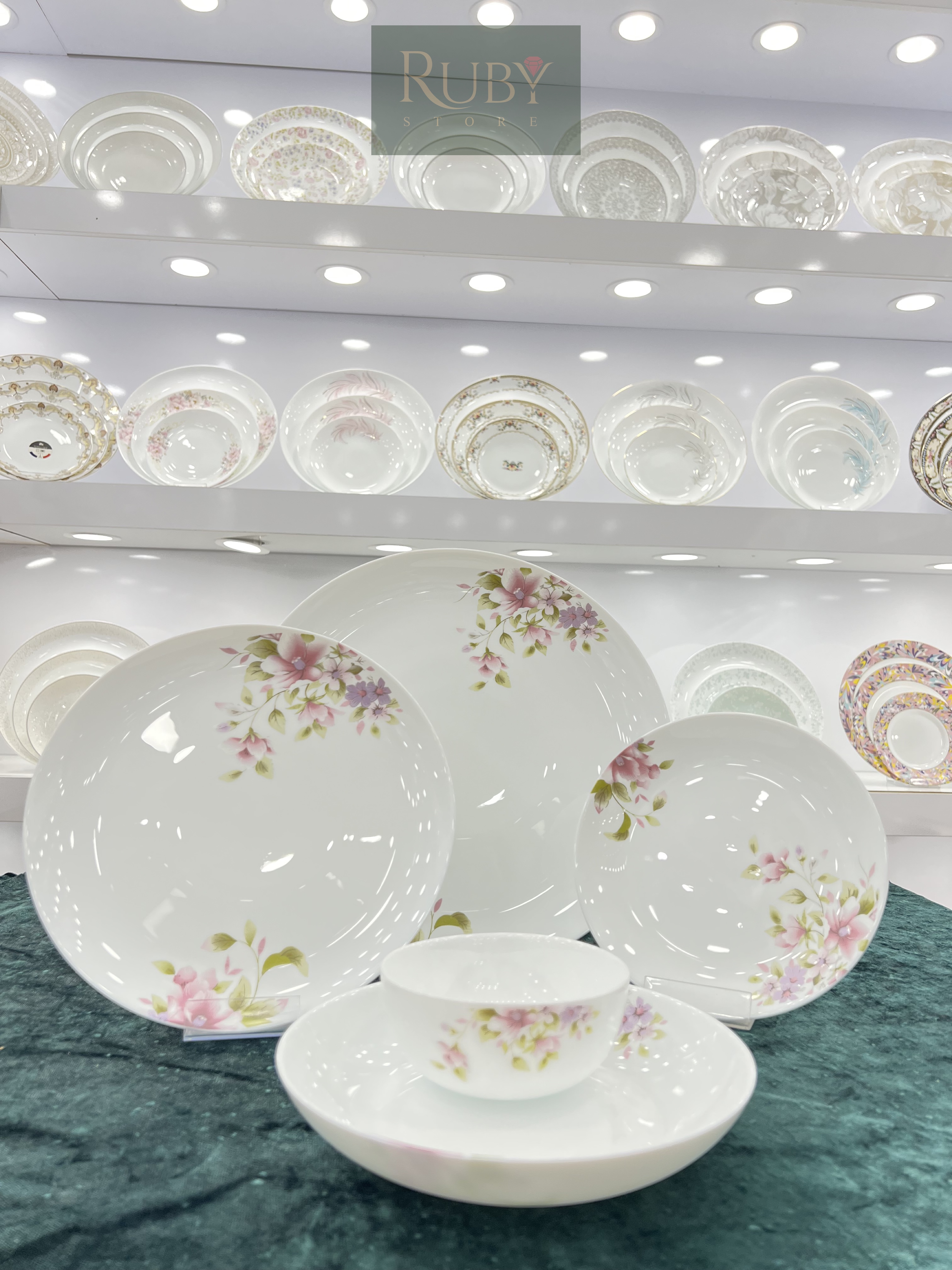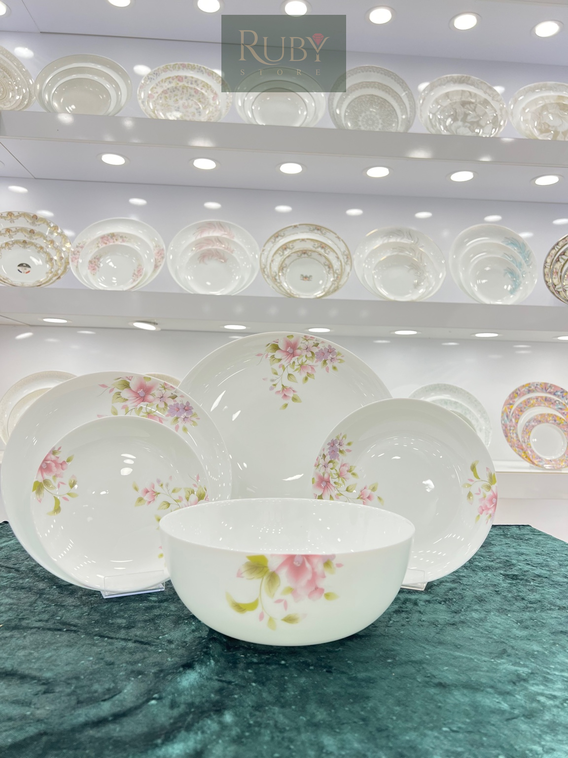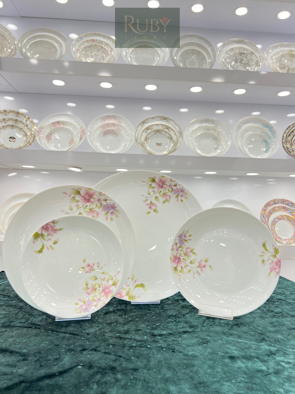 اقلام : 6 عدد پلوخوری 6 عدد خورشت خوری 6 عدد پیش دستی 6عدد ماست خوری 1 دیس 1 سالاد خوری