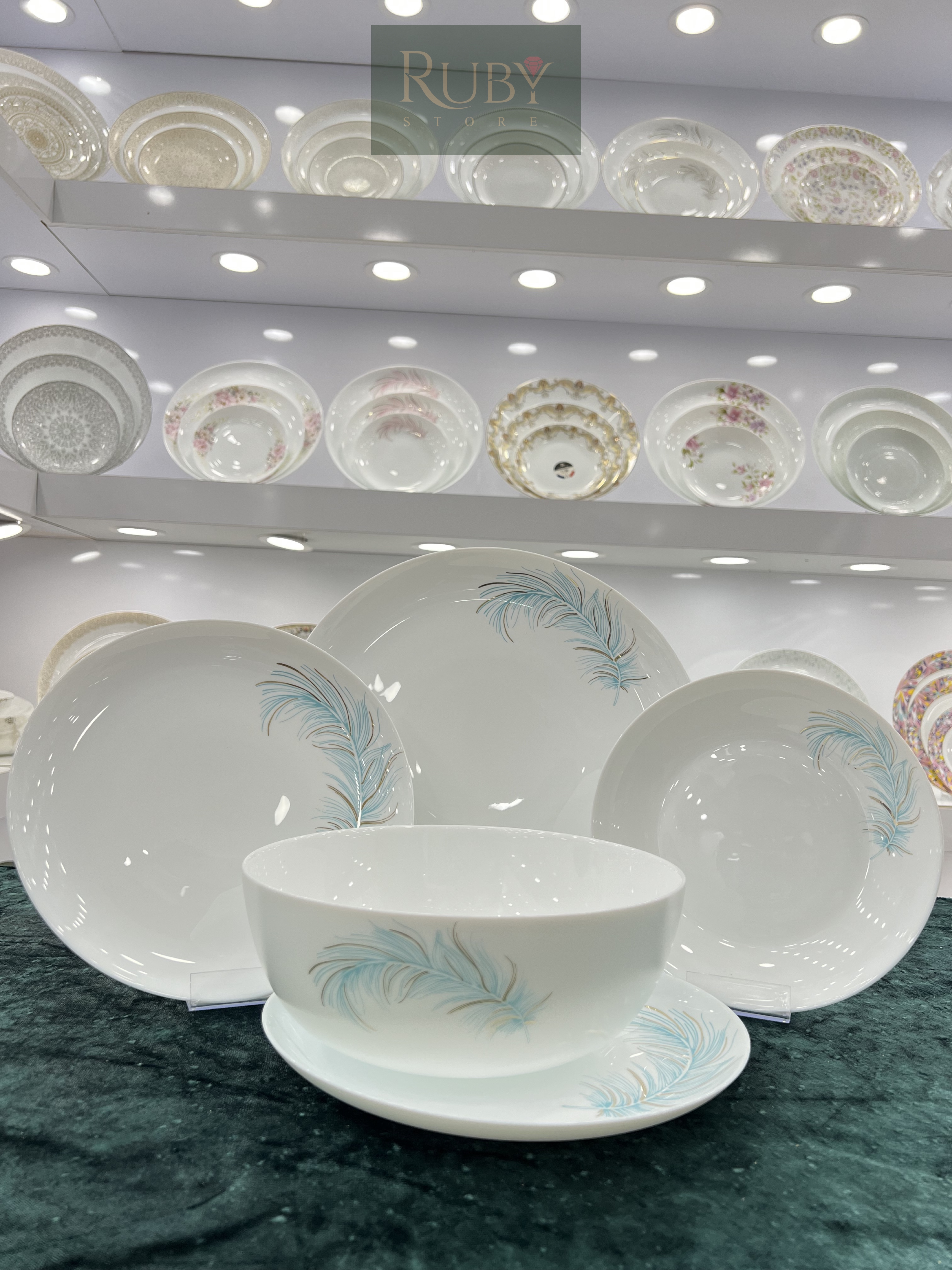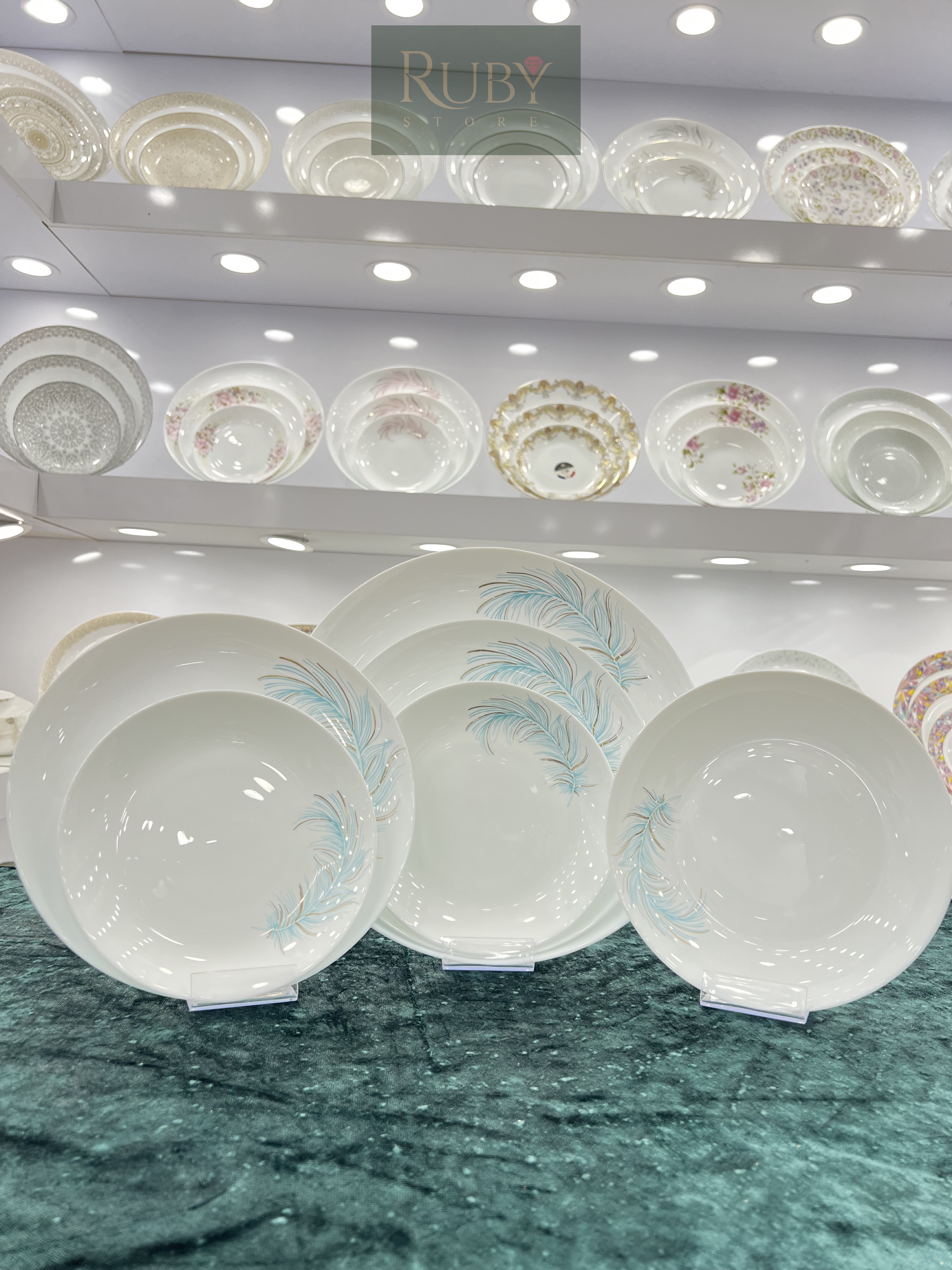 اقلام : 6 عدد پلوخوری 6 عدد خورشت خوری 6عدد پیش دستی 6عدد ماست خوری 1 دیس 1 سالاد خوری