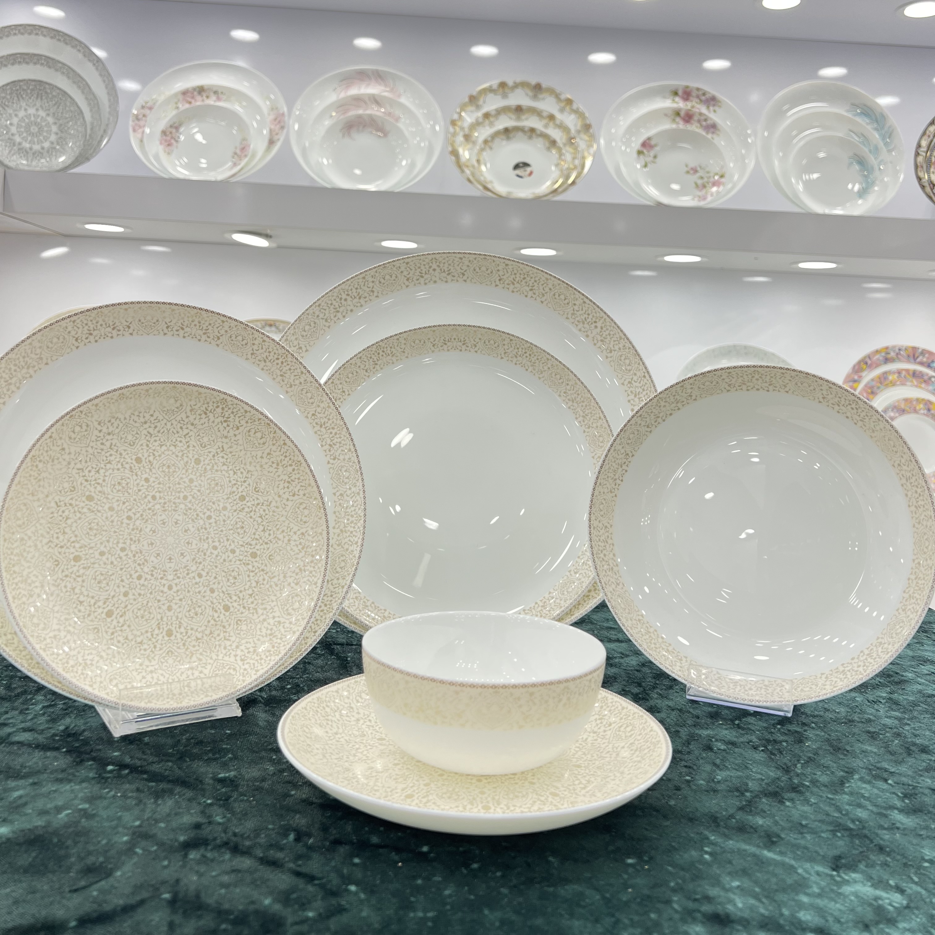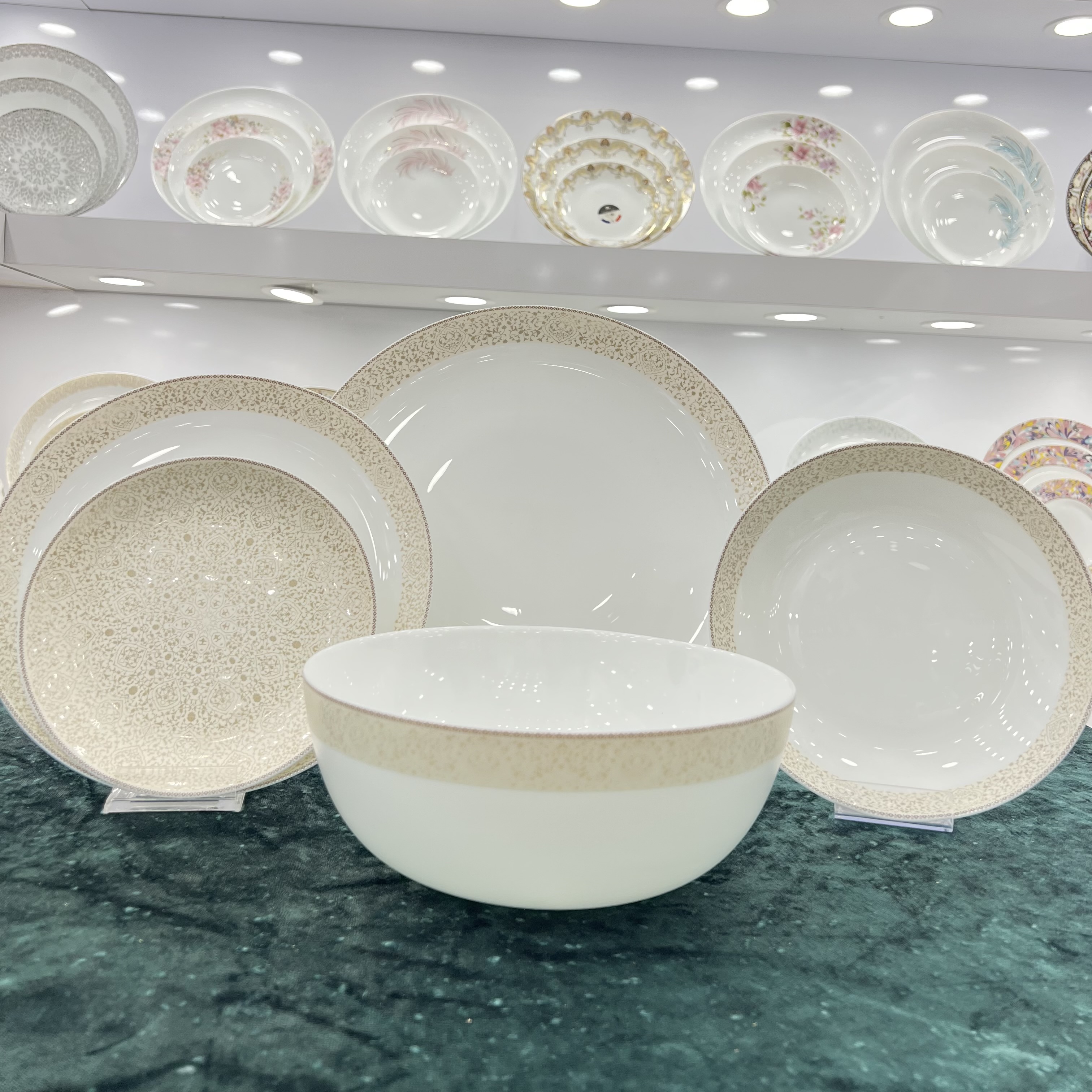 اقلام : 6 عدد پلوخوری 6 عدد خورشت خوری 6 عدد پیش دستی 6عدد ماست خوری 1 دیس 1 سالاد خوری