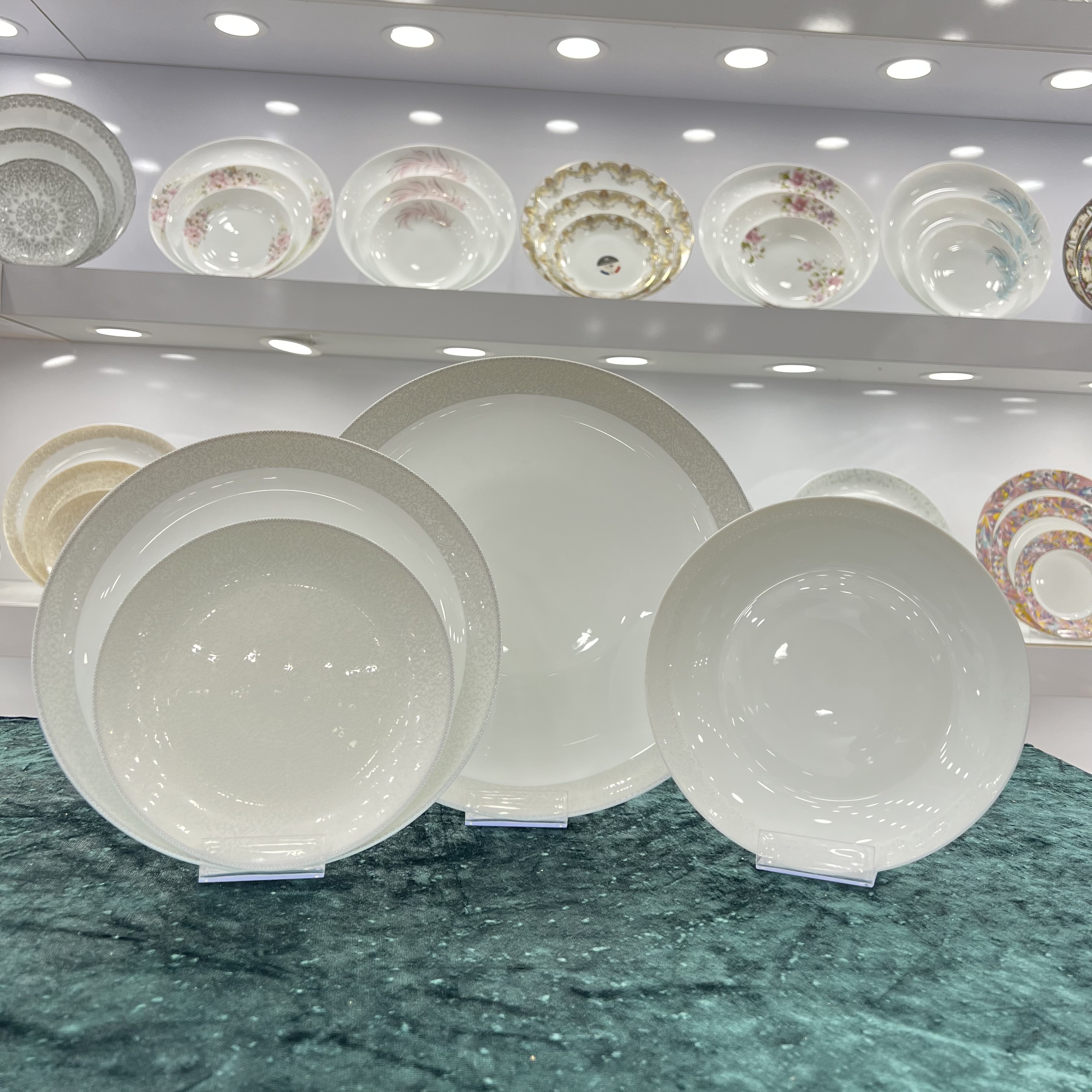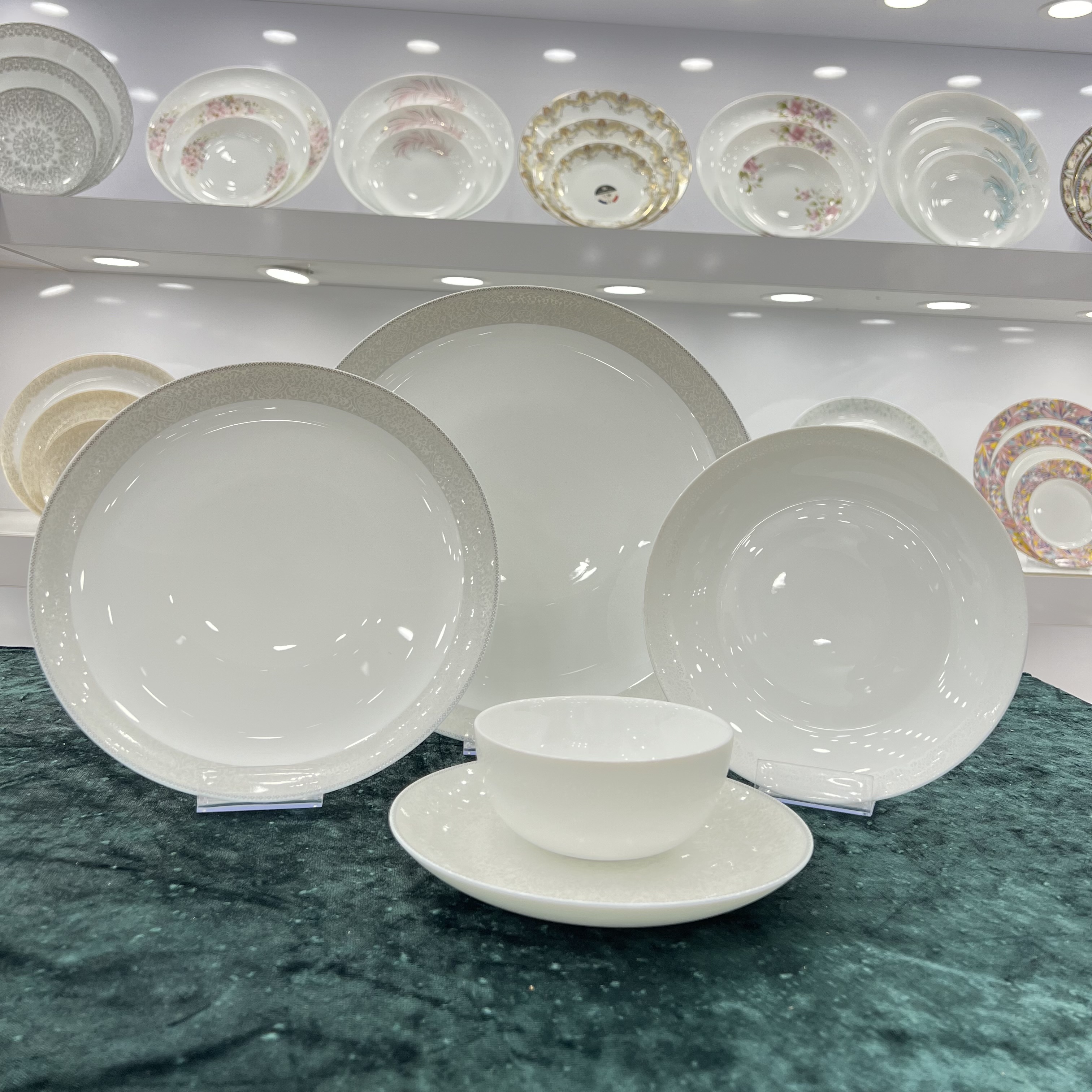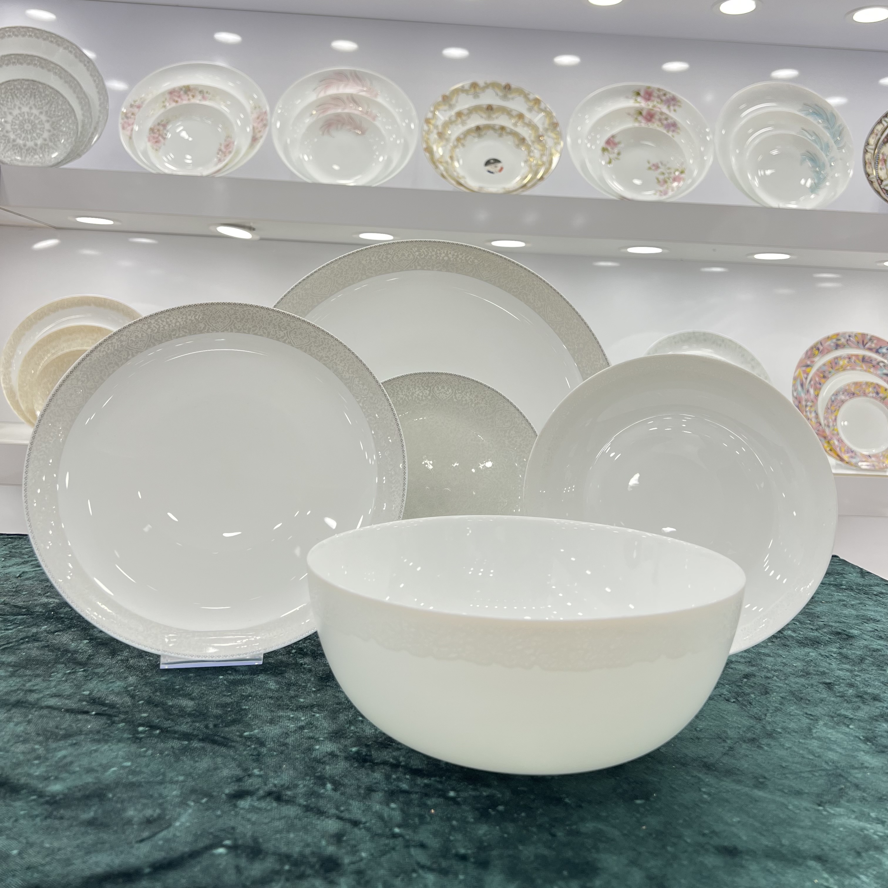 اقلام : 6 عدد پلوخوری 6 عدد خورشت خوری 6 عدد پیش دستی 6عدد ماست خوری 1 دیس 1 سالاد خوری