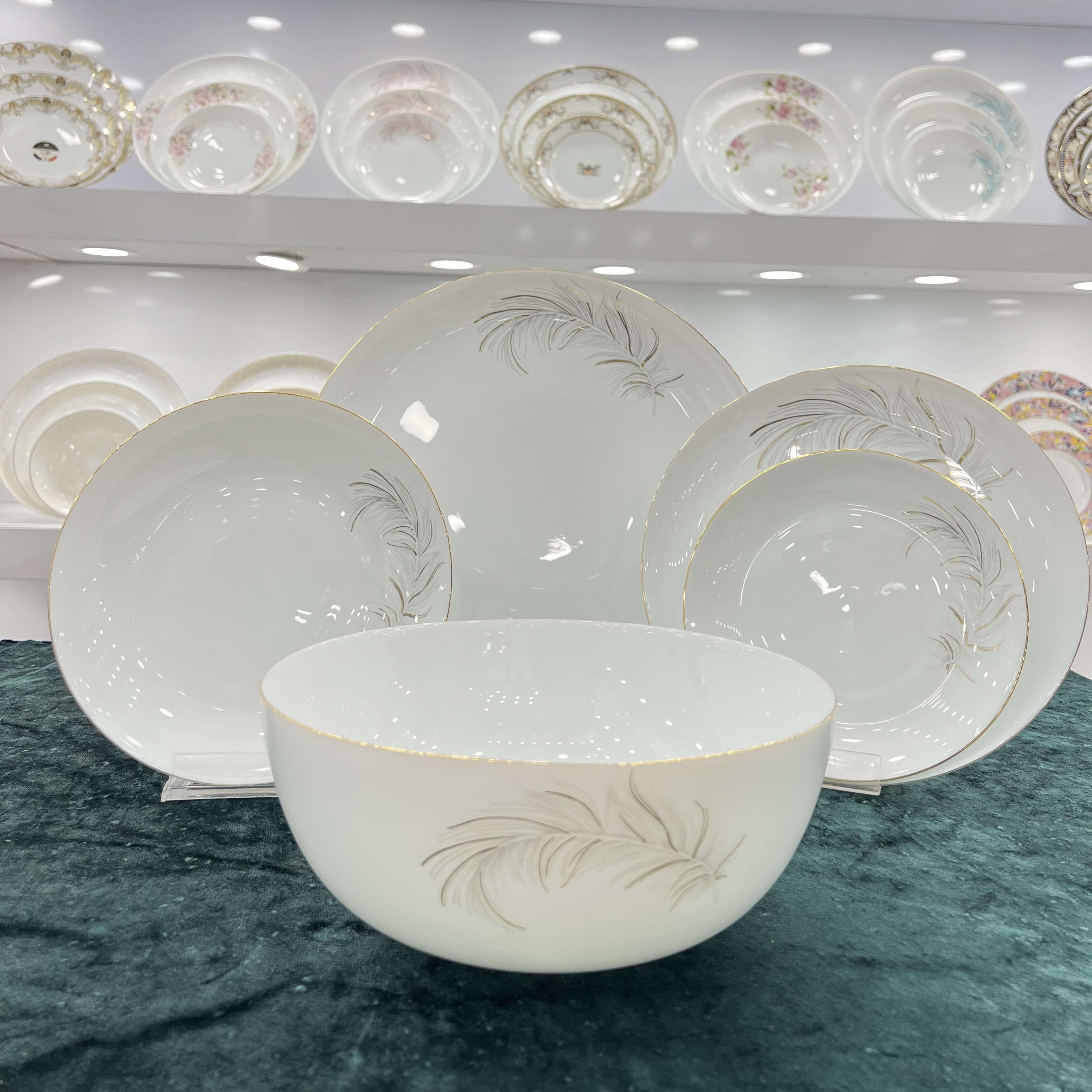 این سرویس از برند گلدن اپال به دلیل وجود لبه های طلا قابل استفاده در ماشین ظرفشویی و مایکرو ویو نمی باشد❌ . این سرویس شامل 6 عدد پلوخوری ، 6 عدد خورشت خوری ، 6 عدد پیش دستی ،6 عدد کاسه ماست ،1 عدد دیس بزرگ ، 1 عدد سالادخوری می باشد. به این سرویس می توان محصولاتی همانند کاسه آبگوشت، کاسه ترشی،نمکدان ، قندان ، سس خوری ، فنجان و نعلبکی، پاستاخوری و لیوان و پارچ اضافه کرد.